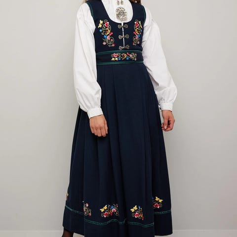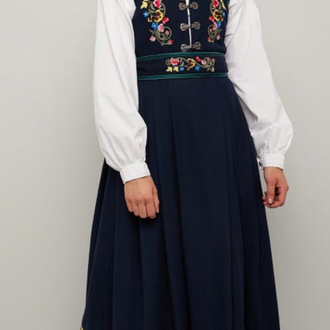 Helt ny festdrakt 65%ull med fine broderier/detaljer selges med skjorte og belte. Selges grunn av vekttap.