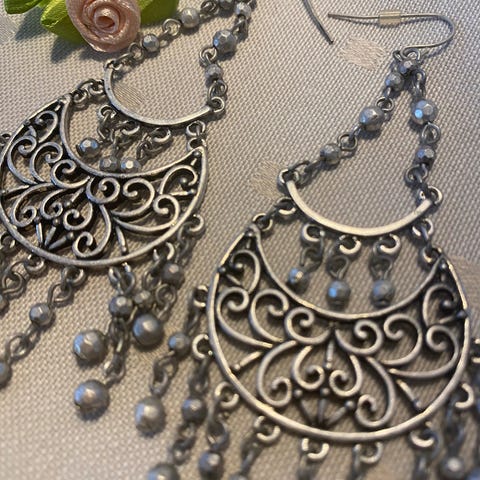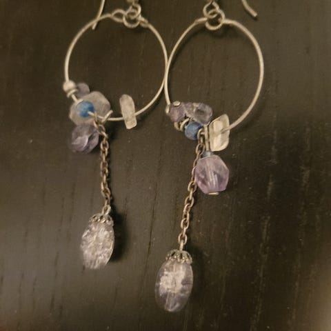 Nydelige øredobber som eg vant i en konkurranse for lenge siden. Mener verdien av de var på rundt 700 kr. Håndlaget av Vanessa Grunnestad # Angel wings earings# #Y2K