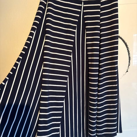 Selger brukt Ralph Lauren A-Line skjørt USA str 6. Skjørtet har ingen stretch og er liten i størrelsen, vil passe en størrelse 34-36. Det passet meg når jeg var cirka 56-57 kg/168 høyde. Livvidde halvmål er cirka 37 cm, lengde cirka 50 cm. Skjørtet har glidelås i siden. Bak på skjørtet er det noen små flekker, men som er vanskelig å se (se bilde). Kjøpt i USA. Ny pris var cirka $150. Selges 390,- . Kan benytte Fiksferdig eller vippse direkte. Kjøper betaler porto.