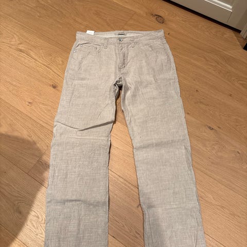 Nye linbukser. Str. UK 14. Aldri brukt da jeg bor i Nord-Norge og ikke har så mange muligheter til å bruke lin :). Innelengde er 32cm og midjen er 38 cm circumference. Det er UK str. 14.