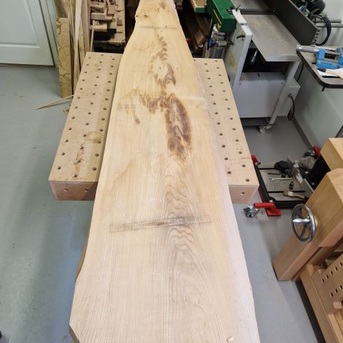 To plank hel flott eik. Tørr. 2300 mm lange. Er vel +/- 450mm brede.