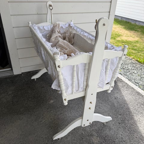 Sjarmerende baby vugge med sengehimmel m.m