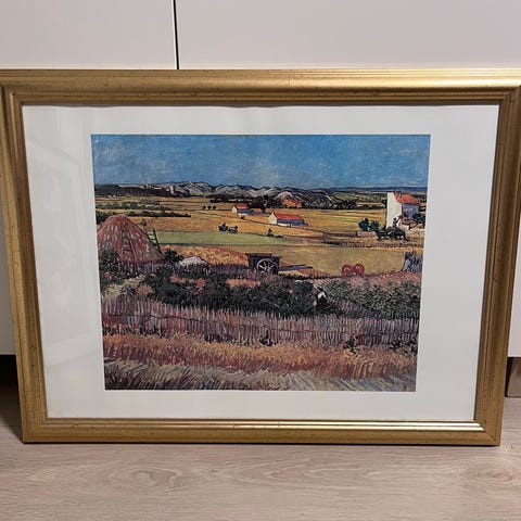 Klassisk gobeleng fra ca 1915. Helt inntakt. Rammen rundt er håndsydd i et ullstoff og er noe falmet og bør byttes ut/restaureres?Selve veggeteppet er 92 cm x 65 cm.