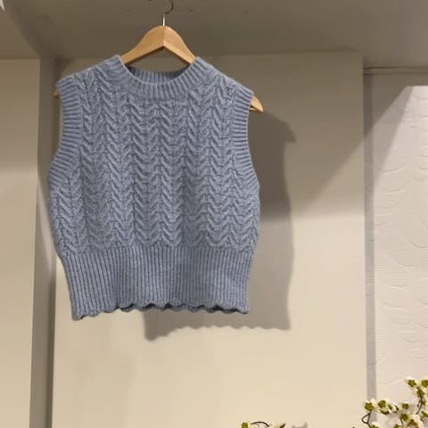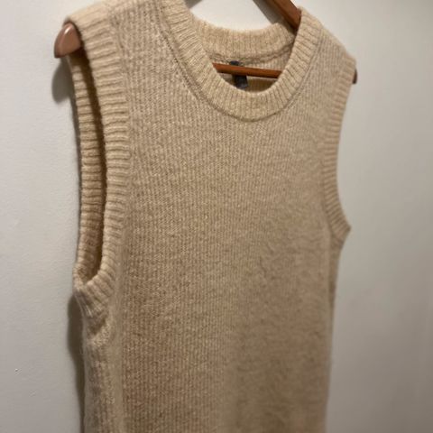 Pent brukt vest fra studio bazar i kremhvit. 80% merinoull, 20% nylon. Veldig myk og god. Litt kort i lengden (cropped fit), og liten i størrelsen. Er i S, men er mer som en XS🥰 noen nupper, men veldig fin.