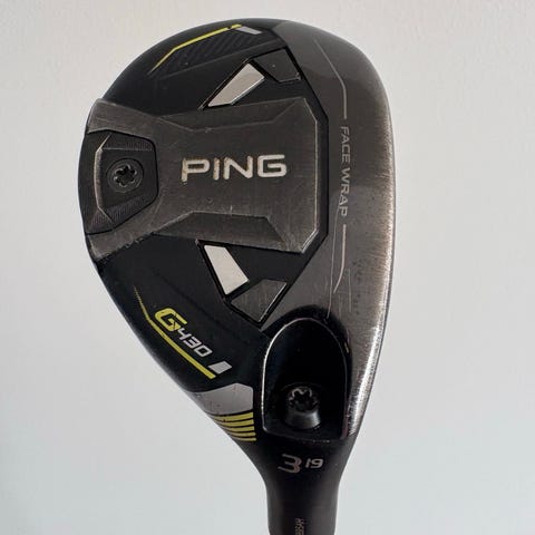 Har en del golfutstyr: Driver, Wood, Hybrid, Bagger, Jernsett, Jernkøller osv