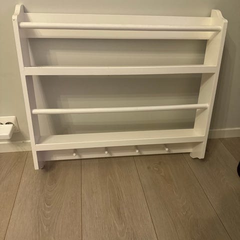Bokhylle til barn fra Done by Deer i metall. Fargen mørke rosa. Ubrukt, men allikevel noen riper på underside fra flytting på gulvet i boden der den står lagret (se bilde).