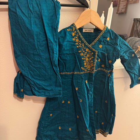 Brukt 1 gang. Pakistansk størrelse 16. Passet mitt barn på 2,5 år.