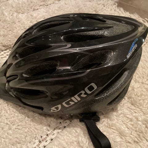 Selger pent brukt Giro sykkelhjelm str 59-63 (large). Den er kun brukt av meg noen ganger og ingen skader, men noen riper har den fått.