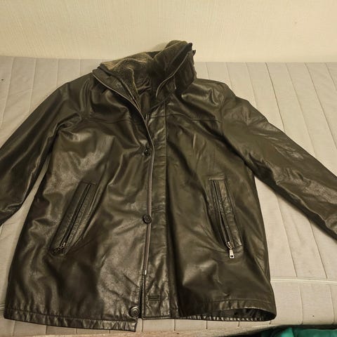 Lite brukt skinnjakke, hel og pen med fine detaljer.