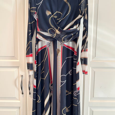 Batikk mønstret kjole i mykt, lett stretch stoff str M. Brodert mønster i rygg.