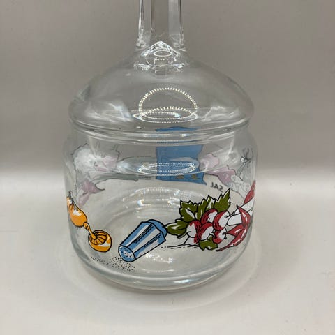Stor glasskrukke med lokk. Selges grunnet plassmangel. Er et område på den ene siden hvor det sitter igjen lim etter en etikett (se bilde).