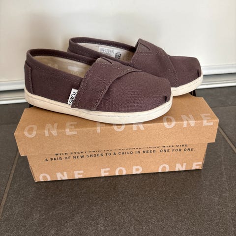 Veldig gode Toms tøffler selges rimelig, da den ene skoen har en flekk foran som ikke går bort.