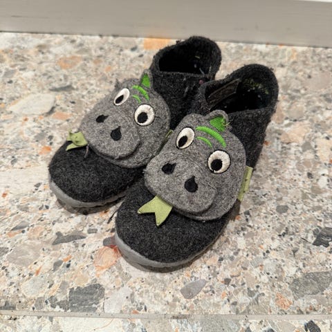 Selges rimelig da det fremgår en liten flekk foran på den ene skoen. Går trolig bort i vask.