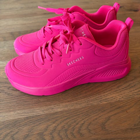Skechers krystallsko i str 36,5(tilsvarer str 36).Skoene er ubrukte,veldig lette og behagelige.Passer både til bukser og kjole.Hentes i Sandefjord eller sendes mot frakt.