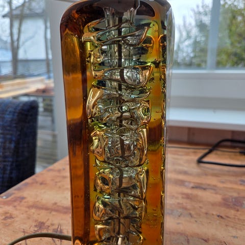Lampen er i god stand og stammer opprinnelig fra Danmark på 1960 tallet. Den fungerer og lyser som den skal. Kan sendes som norgespakke med sporing og forsikring.