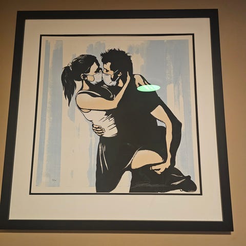 Liten brett nederst i høyre hjørne, kan lett fikses eller rammes ut.