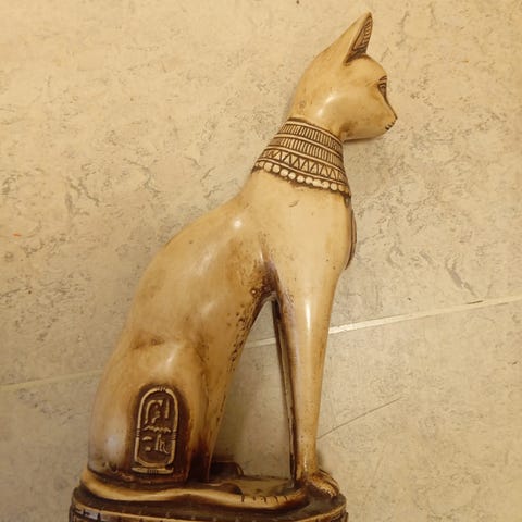 Selger en liten pyntefigur av guden Anubis. Kjøpt i Kairo. Ca. 20 år gammel. Ene øret er knekt.