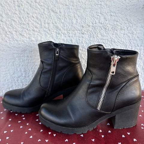 Pent brukte, stilige sorte støveletter. Fine detaljer. Brukt ved en anledning. Syntetiske.