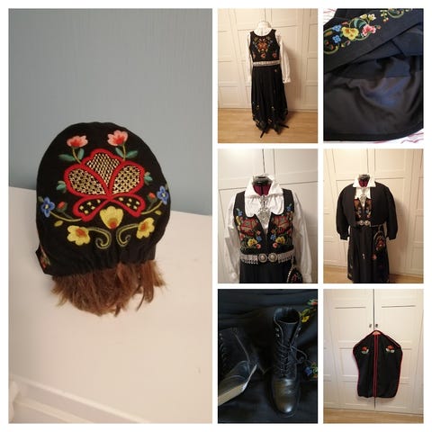 Jeg har en komplett bunad med som jeg ønsker å selge pga. av sviktende helse