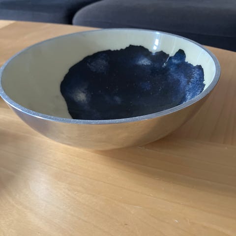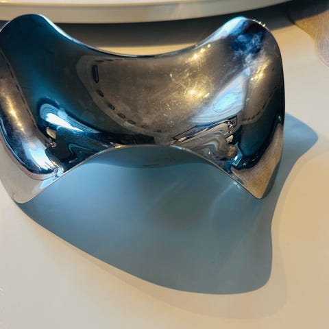Stilig skål fra Georg Jensen. Lite brukt og pent brukt. Ingen skader. I design stål.