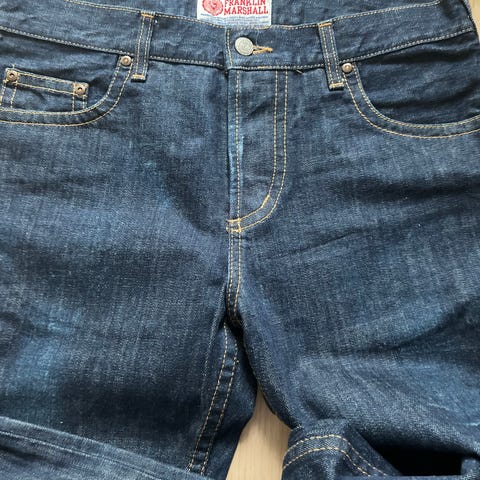 Str. L – Franklin Marshall, blå collegegenser. Meget fin farge, passform og normal i størrelsen.