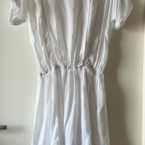 Nydelig kjole til sommerens fester. Er 163 høy og det er litt lang. Med høye heler går det fint. Tynt behagelig stoff. Strikk ved midjen.