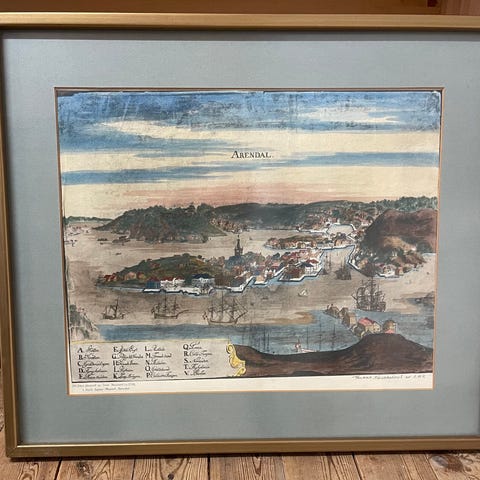 Gammelt foto fra Arendal. Utgitt av P.M. Danielsen. Fint gammel originalfoto med original ramme. Gammelt bile av Arendal rundt 1920. Dette er ikke en nyere reproduskjon. Mål ca 32 x 22cm
