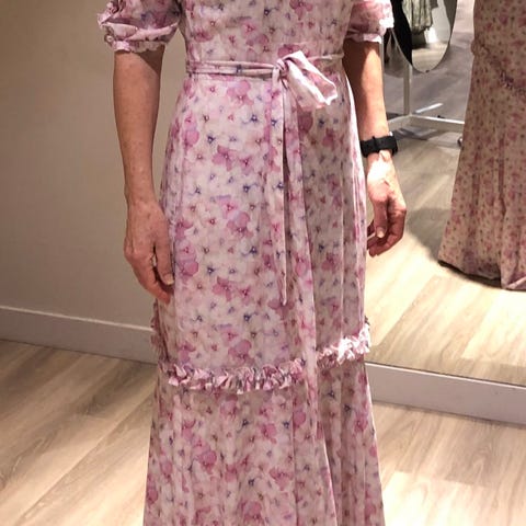 Ubrukt kjole. Dus rosa med nydelige sølvdetaljer. Perfekt til bryllupsfest og andre store anledninger. Ny pris kr 1500