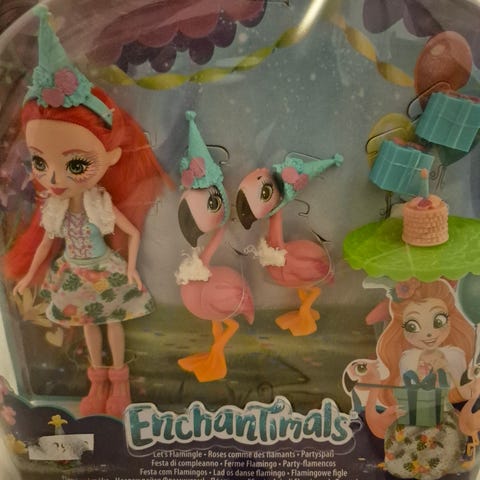 Dukken måler 12,5 cm høy og har flere venner med seg i esken - blandt annet hesten Phillipe.