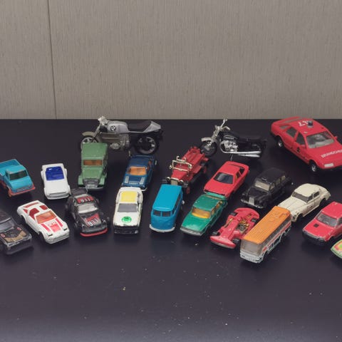 13 stk. vintage 1980 lekebiler, Matchbox, Corgi, Majorette mm. - pent brukt.