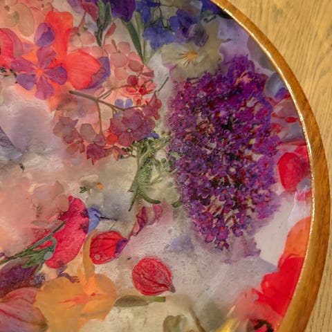 Fat fra Skeidar rosa/blå med gullglins 45cm diameter