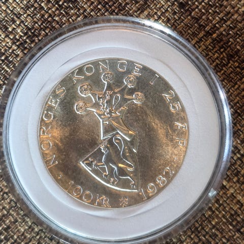 Norges konge 25 år - 100 kr 1982
