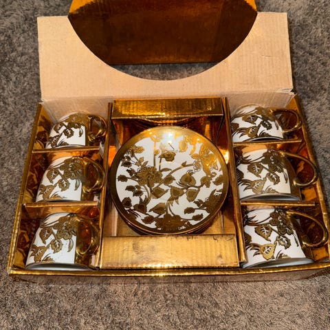 Vintage kopper/glass fra Quist, Schott Mainz - sett med 6 Jena glass