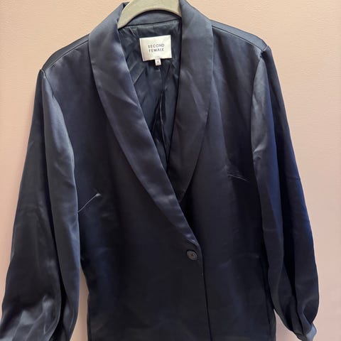 Veldig fin blazer kjøpt for noen år tilbake. Fin til forskjellige anledninger hvor man vil være litt pyntet. Veldig kunstgalleri-vibe. Pent brukt, men har noen småflekker (se bilder). Siden den er såpass mønstret så er ikke dette noe man legger spesielt merke til med mindre man studerer den nøye. Blazeren trakk seg litt sammen etter vask. Selges derfor billig. Selges som den er.
