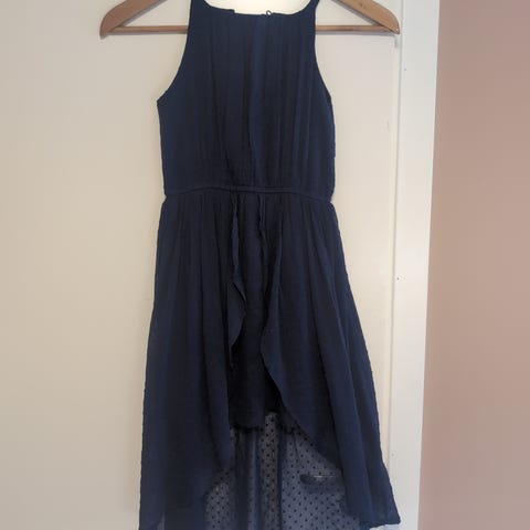 Lyseblå kjole str.146, topp str. 146/152 (100,-) Skjørt str146/152, (50,-). To små hull nederst på skjørtet men ikke særlig synlig pga foldene nederst (50,-) kjole med sommerfugler 10-12år (100,-).