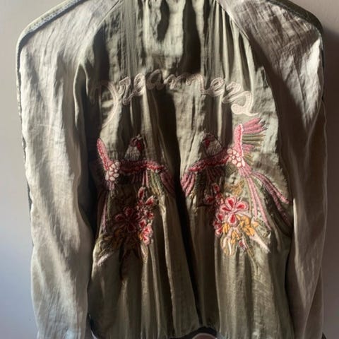 Utrolig lekker jakke som dessverre ikke passer meg. Den er derfor egentlig ikke brukt annet enn prøvd på. Den er vanvittig myk og deilig i stoffet, samtidig som den er veldig elegant. Den ser litt krøllete ut på bildene men det er vare fløyelsstoffet som er vanskelig å rette ut. Prima kvalitet👌🏻