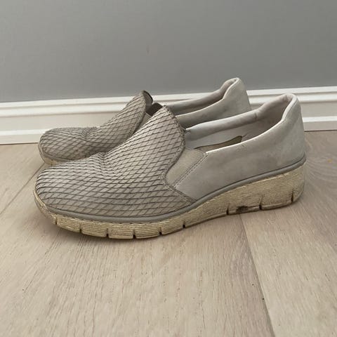 Brukt en gang. Passet ikke foten min. Fine skinnsko med høy hvit såle.