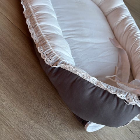 Trekket har noen flekker jeg ikke har fått bort i vask, men ellers helt funksjonelt babynest brukt til ett barn 😊