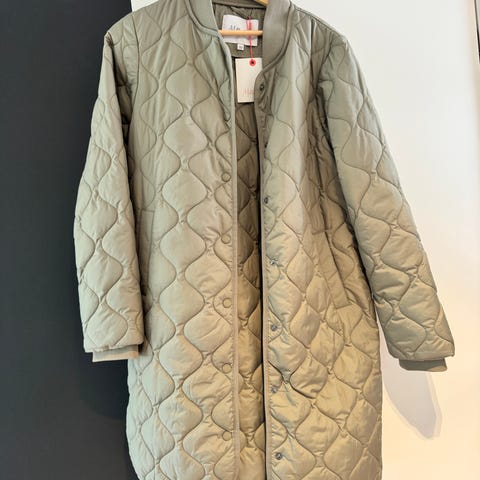 Halvlang tynn boble-jakke høstjakke muldvarp grå/beige farge