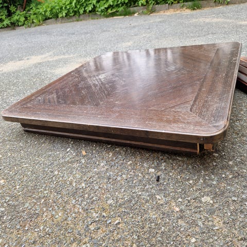 Vintage kurvstol med brunt skinnsete selges.