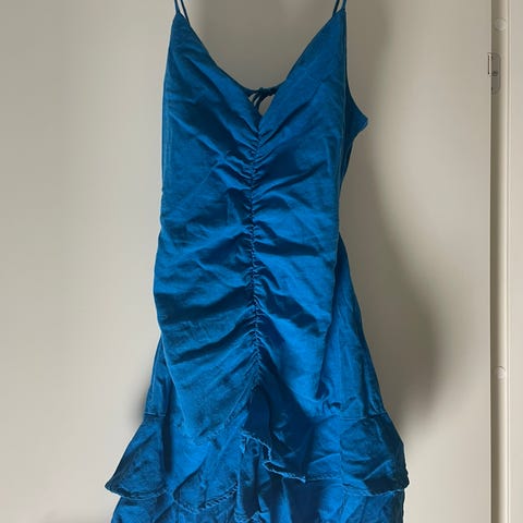 Fin turkis halterneck sommerkjole i str 8, vil si den er xs-s. Pent brukt og selges fordi den har blitt for liten. Må hentes i Kristiansand ellers sendes om kjøper betaler frakt.