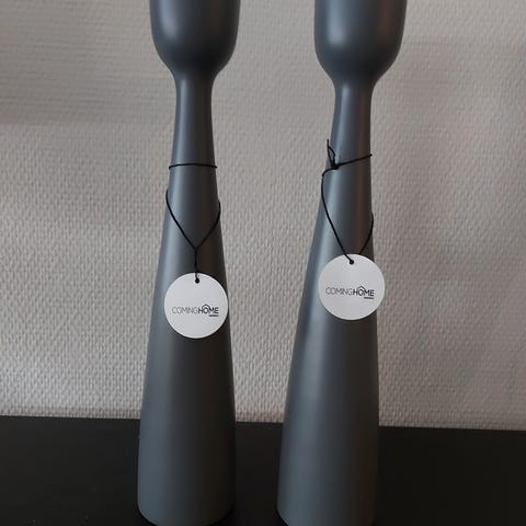 3 «urban» lysestaker i str 28 og 24cm, sort og marineblå. Klassisk og stilfull lysestaker i formstøpt aluminium. To er pent bruk, en er helt ny.