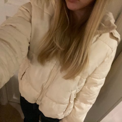 Tynn jakke svart/ hvit striper. Brukt over kjoler og til pent. Er ikke en ute jakke. Str M hos WOW, ca 158/164.
