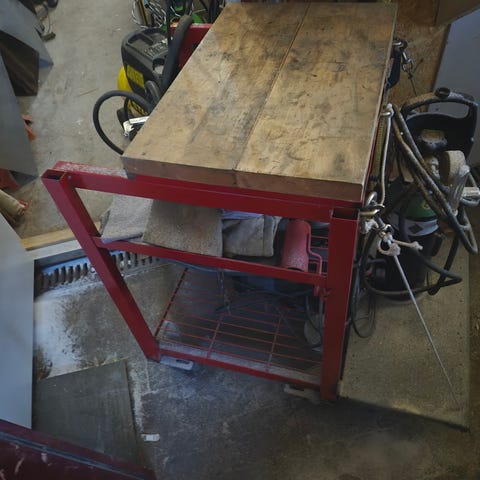 Lite veldig anvendelig arbeidsbord til leie. Kjekt å ha sager og div. på