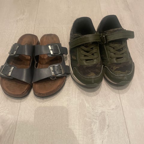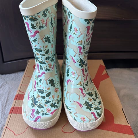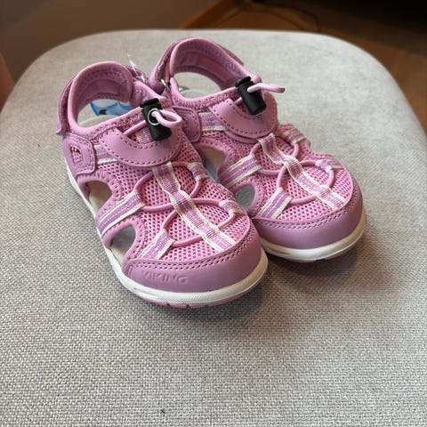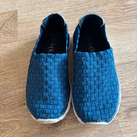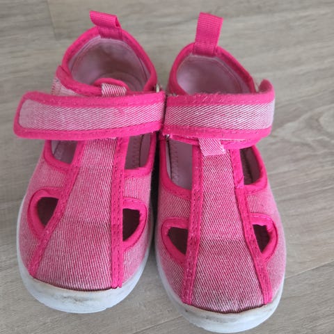 Bomull, gummisåle, bårelås. Pent brukt av ett barn og nyvasket nå.