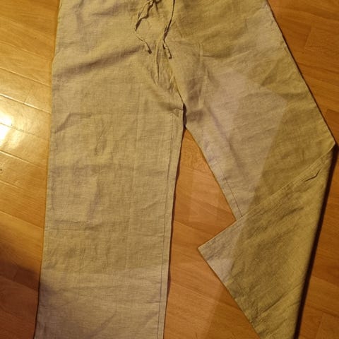 Fra Gina. Rekker litt opp på ankelen på meg som er 1,67. 55 % lin. Litt vidde i buksen. Brukt Max to ganger da den er for stor for meg.