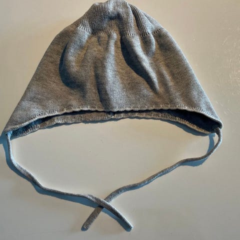 Grå hette som kan tas av (trykknapper).
