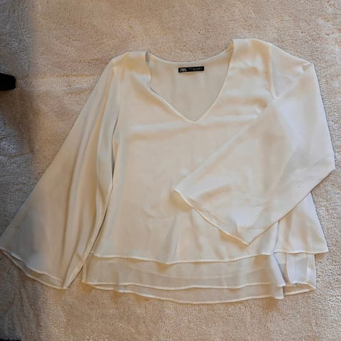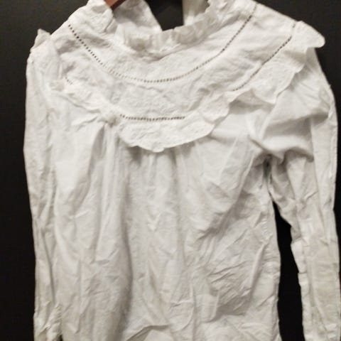 Stilig hvit designer bluse fra Lm i str large. Kantet med sort søm. Ikke brukt. Ingen skader. Sender gjerne med helthjem.
