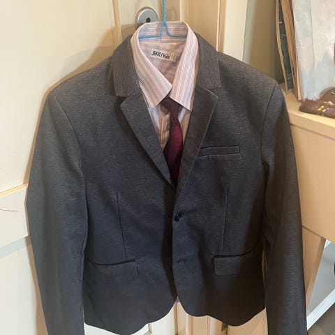 Dressjakke, bukse og hvit skjorte selges. Fra Cubus strl