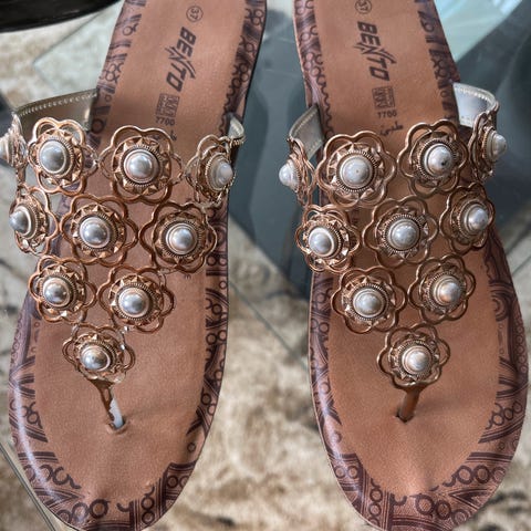 Skoene er pent brukte og har i mange år nå kun ligget lagret i en oppbevaringsboks. (Kanskje derav litt formet av det, ref. bildene?)